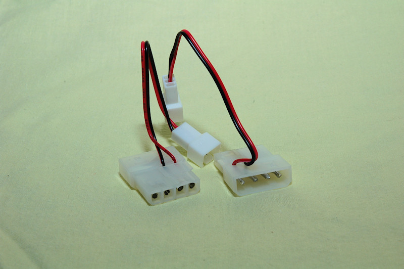 Also in the package you find a connect-through molex connector with a 3 pin connector. If you use the fan speed controller that comes with the fan you should use this 3 pin connector, but you can also connect your fan directly to this 4 -> 3 pin connector and get a one-speed fan.