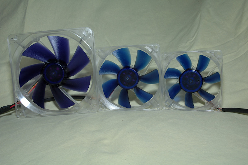 We have three fans in our test lab today; 80, 92 and 120mm SWiF Fans. All three have transparent blue blades and transparent frame.