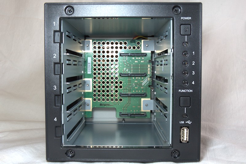 The LinkStation Pro Quad offers four SATA drives running at 3 Gb/s, connected to a network interface capable of transfer speeds up to 1000 Mbps. Protocol-wise it offers TCP/IP which means a web interface to control the unit, CIFS/SMB, AFP, HTTP/HTTPS, FTP/SFTP for different transfer methods ranging from Network Direct Attached Storage (NDAS) with the SMB – Samba interface, to regular file transfer with FTP and even Secure FTP.