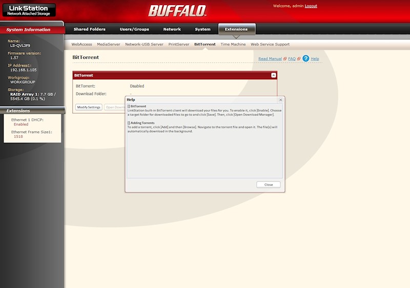 If you're also using downloading a lot with torrents you can easily do so by taking a torrent link, copy it over to the web interface of the LinkStation and let it download the whole torrent, while you go to bed and shut down your computer. This may be perfect for those that follow certain podcasts and similar, download while you're asleep and then transfer the files over to your mobile device in the morning so you watch them on the way to work.