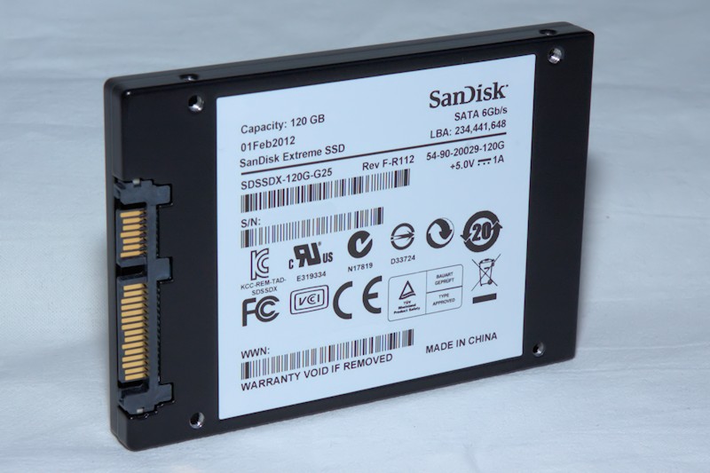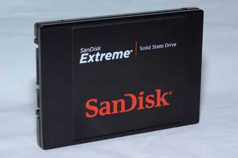 Heading forward, looking at the disk itself. The Extreme SSD from Sandisk is an 2.5 inch drive and if you haven't heard about SSD drives before, the SSD stands for Solid State Drive. Compared to an older IDE/ATA drive which has rotating disks that spin between 5400 and 15 000 rounds per minute, the SSD features only IC (Integrated Circuits) chips with no moving parts.