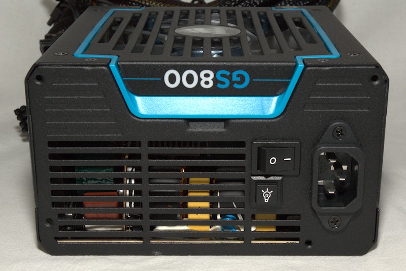 This together with switchable red, white and blue LED fan lighting surely makes the GS800 stand out among the power supplies. These three colors as well as a led-off mode is easily changed with a button on the power supply, which is on the outside of your case when the power supply is installed.