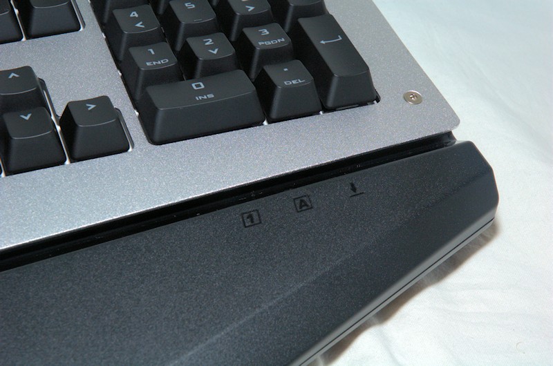 In the bottom right of the keyboard we also find the num-lock, caps-lock and scroll-lock indicators. The bottom side of the keyboard doesn’t give you any goodies, we find the serial number and two extenders to raise your keyboard.