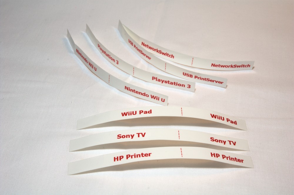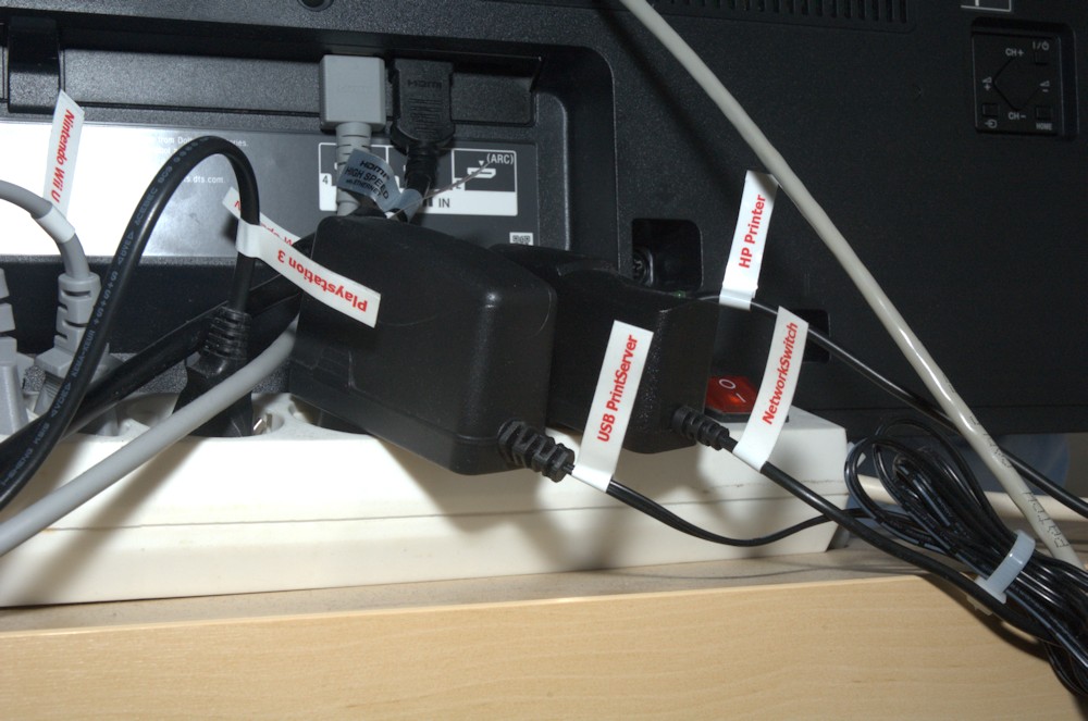 In my opinion it looks great and makes it really easy to find the correct cable among lots of cables. Another set of labels found their way to the computer setup where I have a few, but not too many different cables.
