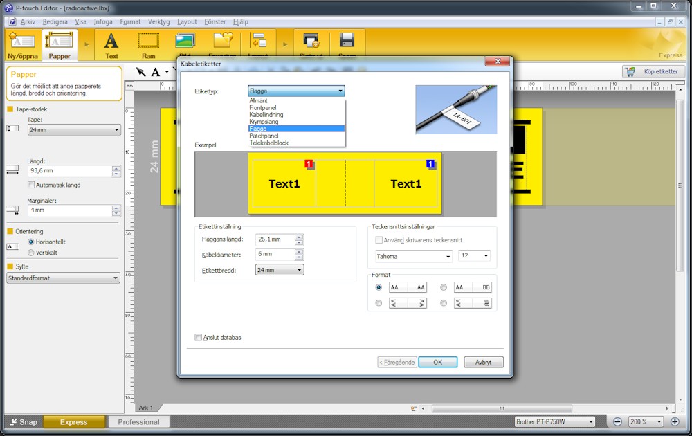 Finally, I’m not going through the full software, but I wanted to show yet another solution for labels. Ok, so the P750W can handle a maximum width of 24mm, what if you really need a wider label, is it really necessary to buy a new machine that handles wider tapes?