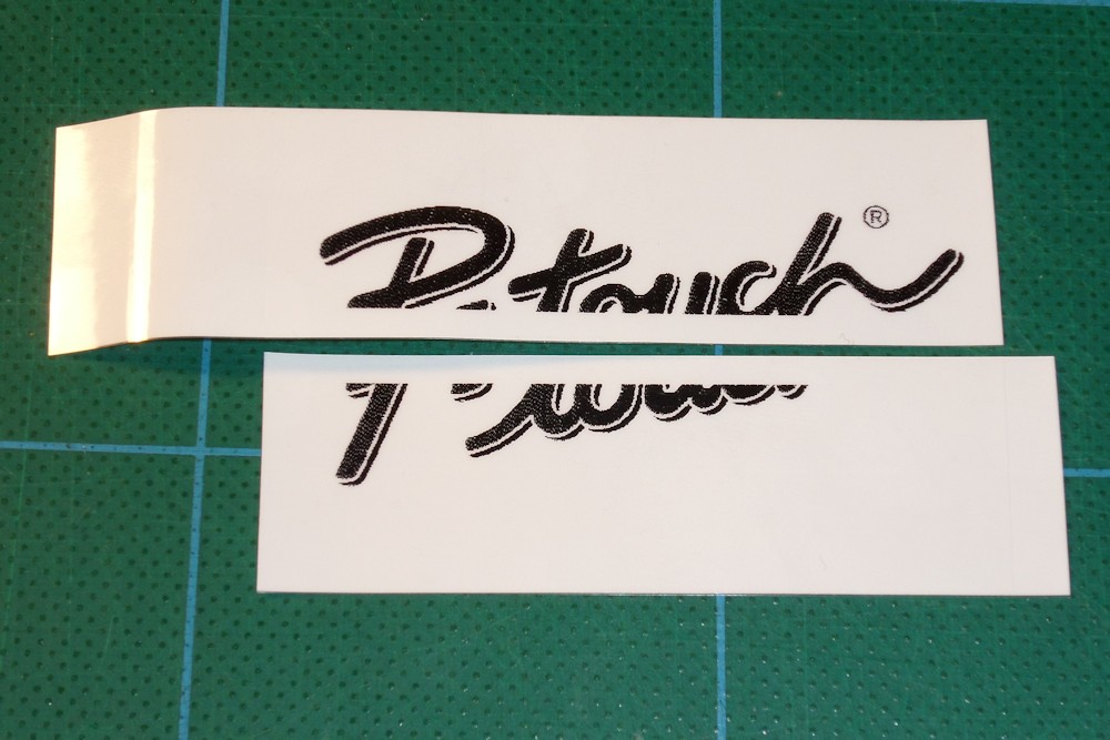 Here I’ve taken the P-Touch logo and placed it in the middle of two labels. I didn’t really know what to expect when it was printed as it was the first time I’ve tried this. So, when printed it looks like the following, not really smooth transition between the two labels, although it works.