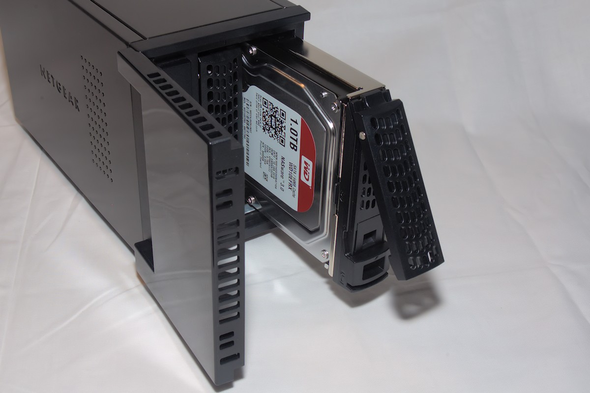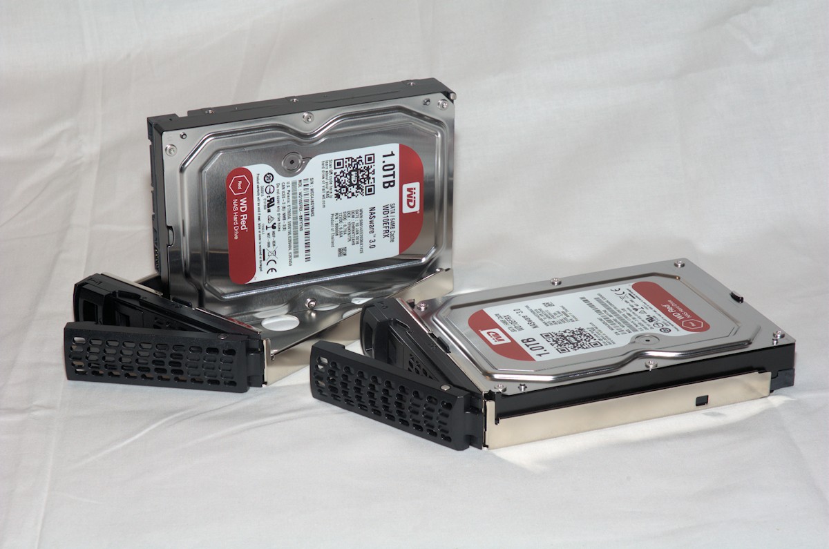 You can get the RN212 in one of several variants; the one we got today is the diskless. This means that you can stuff any two disks you want and we got supplied with two 1TB disks from Western Digital, their shiny red version of disks that are specifically made for RAID and NAS use.