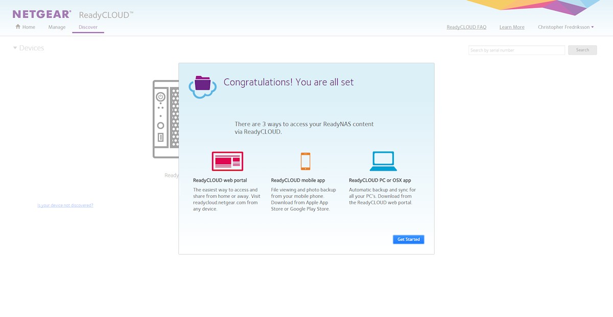 The first way of accessing the RN212 is obviously through the HTTP/WEB interface as we might want to setup the unit to our liking. Netgear has made this very simple by providing us with a link which we should go to first. First off we head to http://readycloud.netgear.com where we're provided with a simple to follow guide in which you will identify and register your NAS unit.