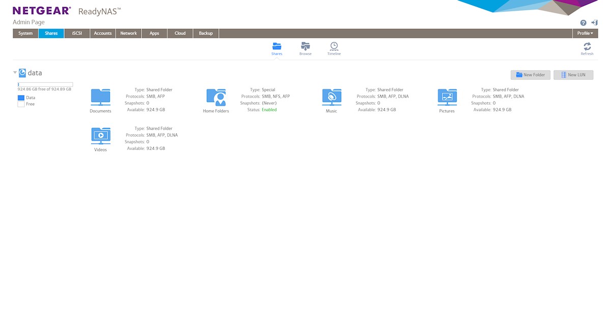 There are a lot of options and you can browse the files and folders, called shares, through the web interface or as previously mentioned as a share connected to your computer with a drive letter attached – just like any other disk or USB drive.