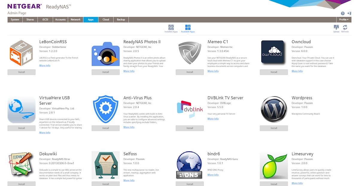 Last but not least, we have apps. If you're looking to extend the usefulness of your NAS unit you can look into the apps, which range from photo albums to rss readers, Wordpress, USB server to Plex media server. There are a lot of different apps, you can write them yourself as well and there are coming more apps every month.