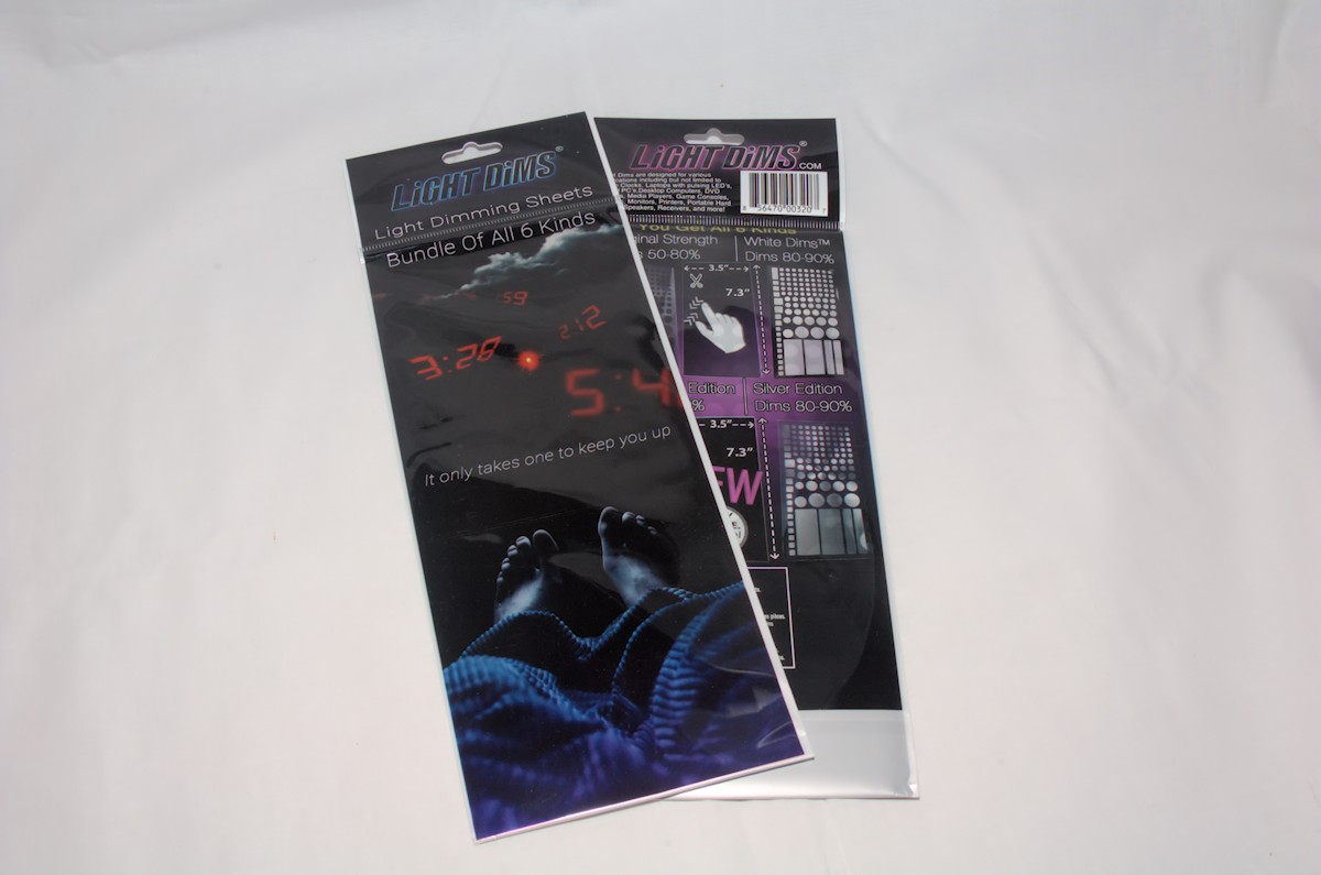 Jason and his family, behind the LightDims, were kind enough to send over some samples to try out. The LightDims comes in a wide variety of sizes and one package is chock full of them. There are a couple of different options to choose from, ranging from the "sunglasses" (also known as the original strength) which blocks 50-80% of the light.