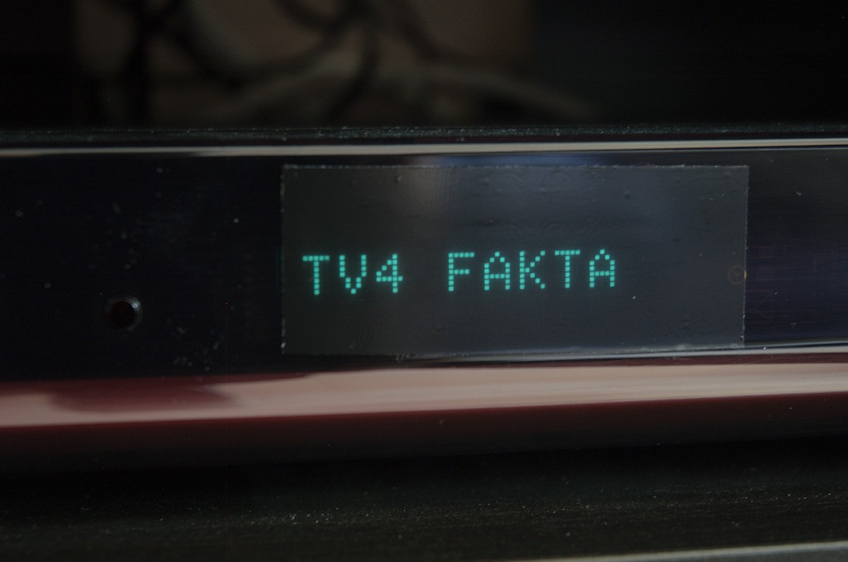 It shows the clock all the time and shows which channel or program you're watching at the moment. It is bright, which also is a big plus – cause you can easily see the display from a distance.