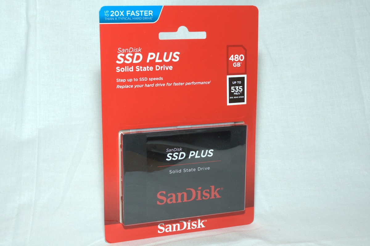 Today we're having a look at another SSD drive and this time it is from Sandisk. The drive we have on our bench today is the SSD Plus 480GB. A rather large SSD, in a small format – of course.