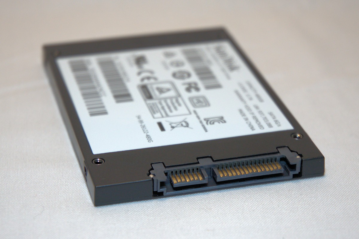 The SSD drive measures 7mm in height, 10mm in length and is about 7mm wide. On the backside we find the standard, quite beautiful in my taste, SATA data and power connector. This of course is nothing specific for Sandisk, but for some reason I do really like these connectors.