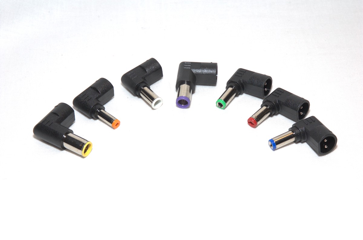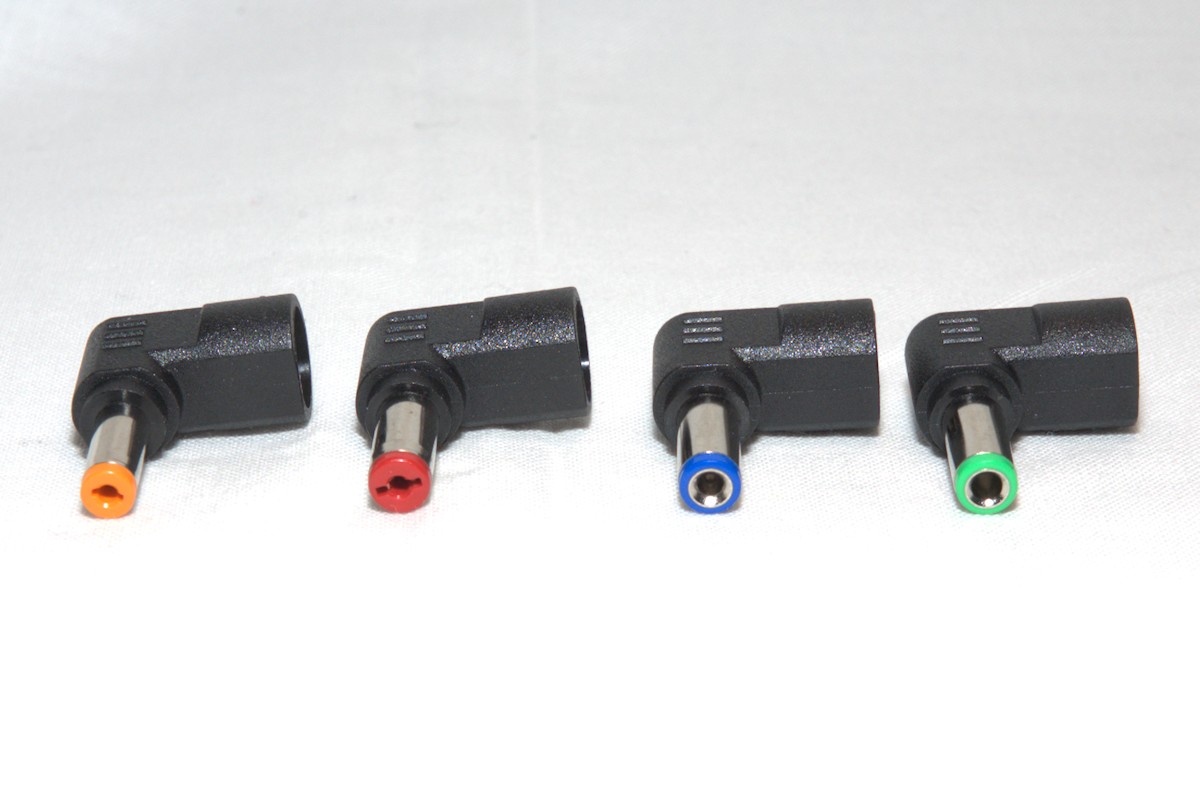 The output is rated DC 19V with a supply of 4.74 Amps which multiplied together equals the 90W that the power adapter is rated for. Together with the power adapter we get a total of 7 different connectors, color coded for ease of use.