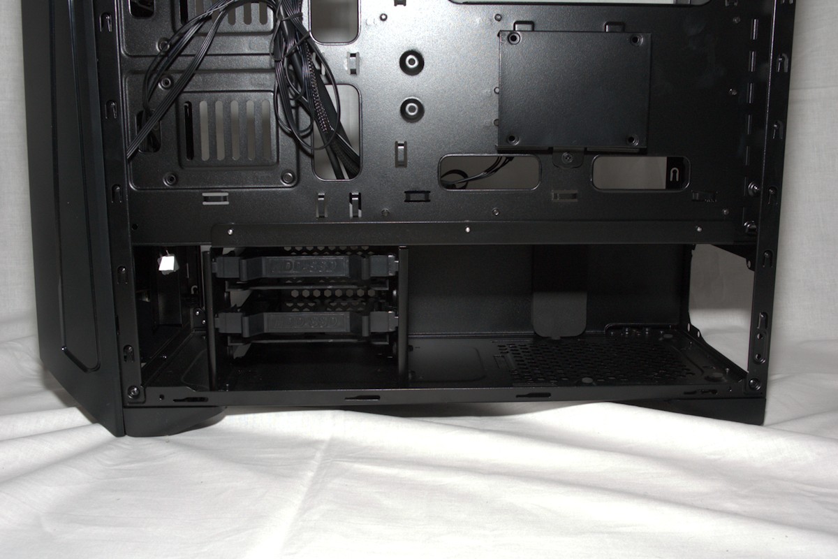First off we can clearly see all the routing holes for cables, there is space for an additional SSD drive behind the motherboard and we get access to the PSU chamber which holds two 3.5" or two 2.5" drives.