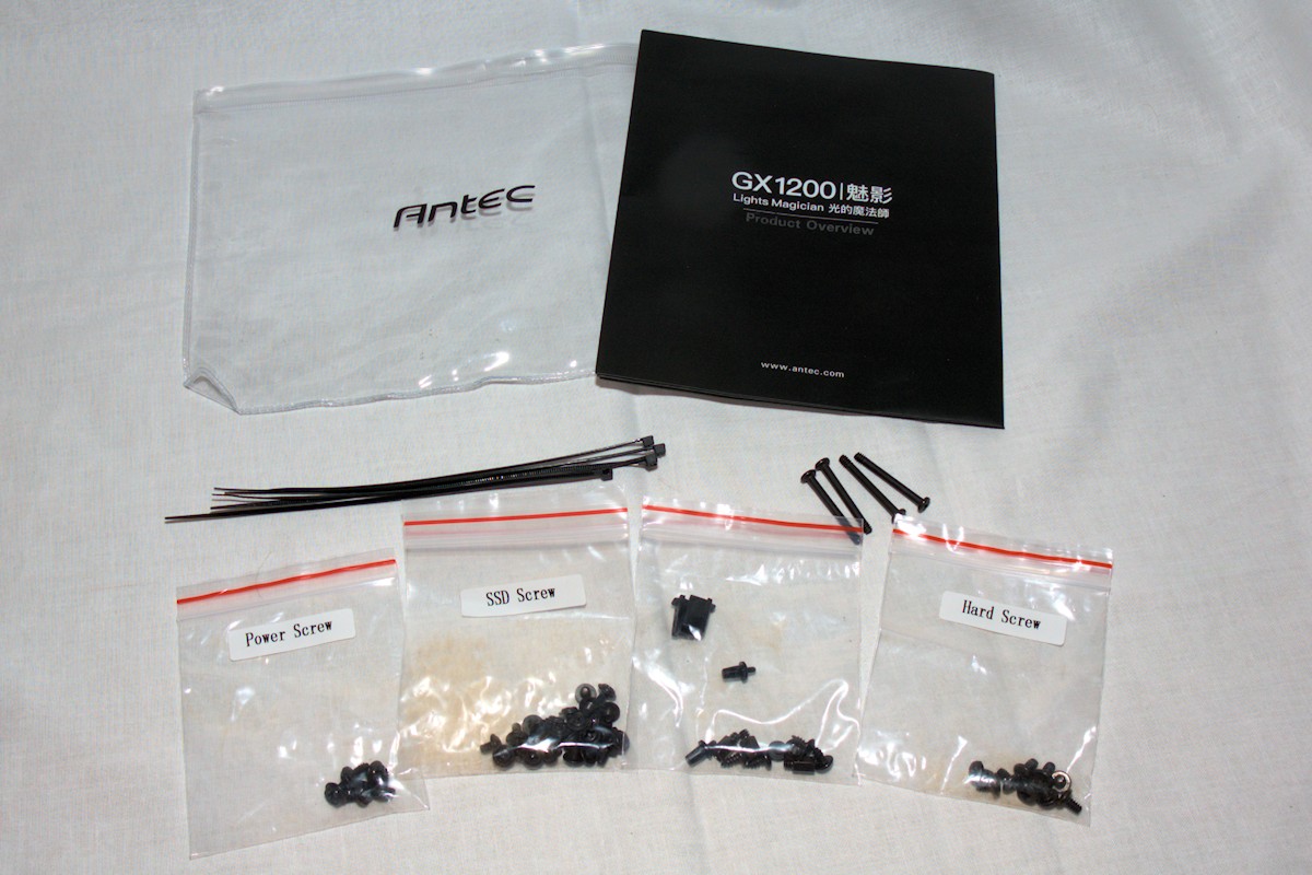 Together with the case we get some accessories such as zip ties and screws of all sorts.