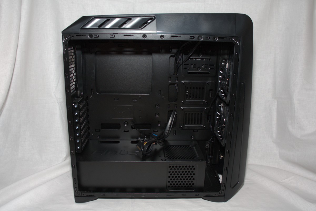 Removing the side panel reveals quite some space for your components, while at the same time a big box in the bottom, restricting the space quite a bit. However, this is an excellent solution to hide away the power supply and making sure that it doesn't feed its heat into the rest of the system. Antec has done this in many different ways over the years and the solution the GX1200 certainly seems to be a very nice one.